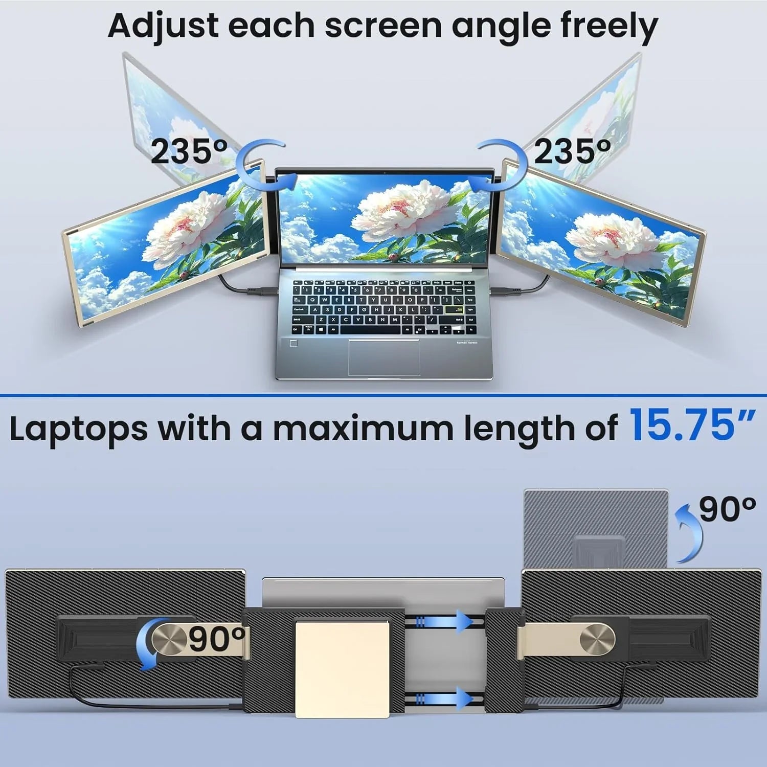Boost your productivity anywhere with this 15.6" dual FHD IPS portable monitor setup. Featuring a flexible swivel design, vivid 1080P displays, and lightweight durability, it’s perfect for work, travel, and multitasking on the go.